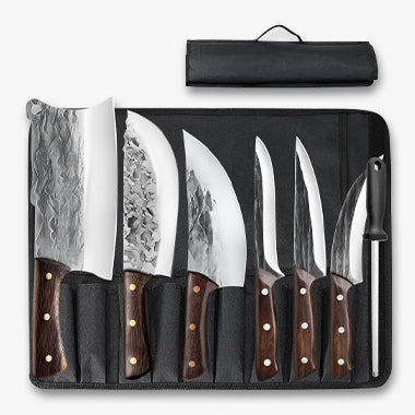 Knife is sharp and strong. It cuts smoothly through all foods. The blade stays sharp for long. It has a strong stainless steel body. The handle gives a firm grip. It feels balanced in your hand. You can use it for daily cooking. The weight feels just right. It slices meat with ease. It chops vegetables fast. You can shop latest collection of Knife Store online. The design is simple and sleek. The 7 Pieces Butcher Chef Knife Set with Roll Bag adds style to your kitchen. Cleaning is easy with warm water. It resists rust and stains. You can store it safely in a block. This knife is built to last. It gives clean and smooth cuts. You will enjoy cooking more. Every kitchen needs this reliable tool.