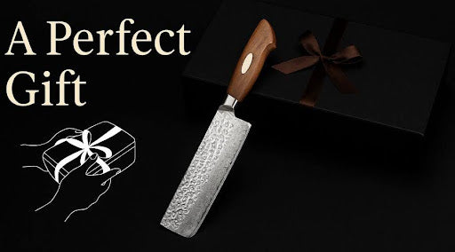 Experience unmatched balance and finesse with the Black Wolf Nakiri Knife. Designed for chefs who demand control, its full-tang build and finely tuned 15° edge make each slice effortless. The VG10 Damascus blade glides through vegetables, enhancing every prep session. Elevate your culinary game with a knife that’s not just a tool—but an extension of your technique.