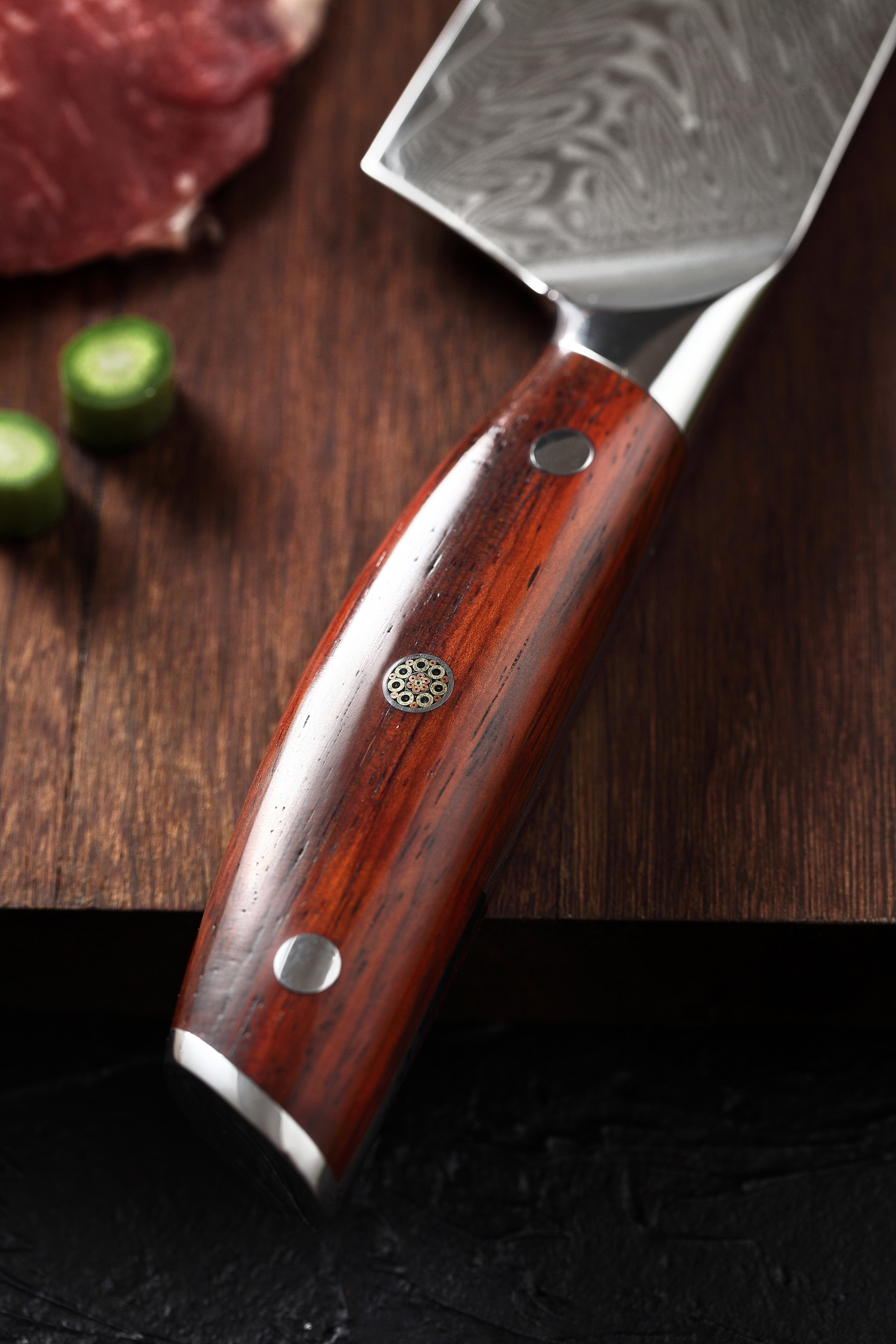 67 layers of Damascus steel provide long-lasting sharpness and strength.